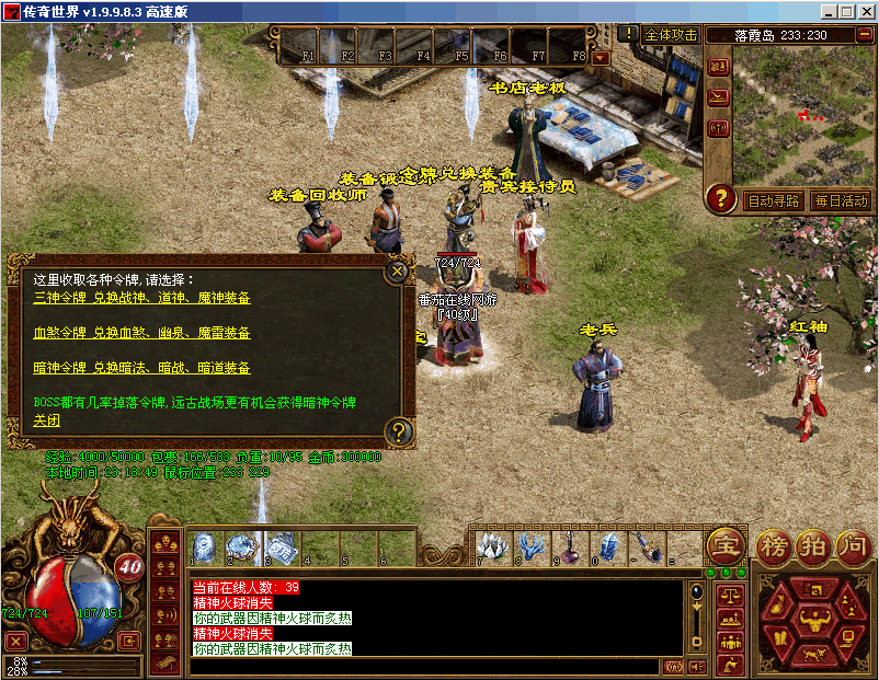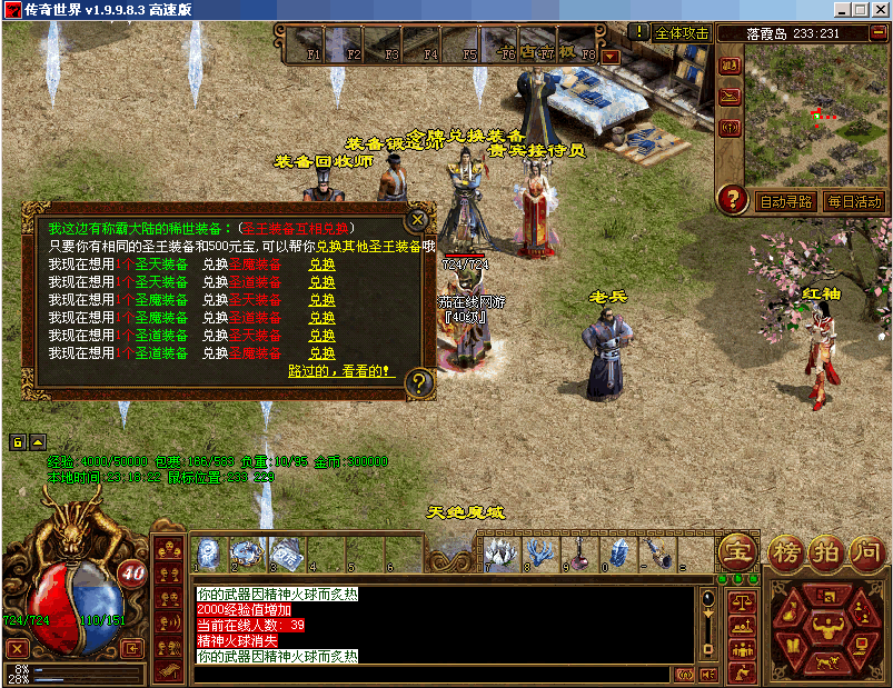 【游戏介绍】本服装备可合成,可回收,爆率合理,三个职业平衡,超级耐玩!相信您会爱上的.