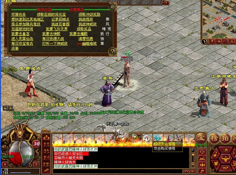 初级打宝:再去天空打神武系列,凌霄天界打战神以上装备,请不要过早去高级地图否则浪费时间