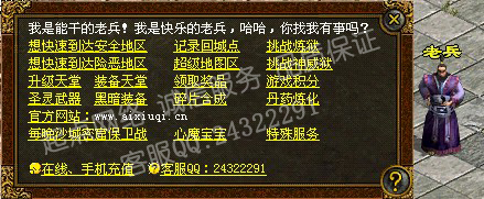 新手上线送元宝、顶级蟠龙套装和神兵,并送有属性的二转火麒麟和骑战技能方便测试。