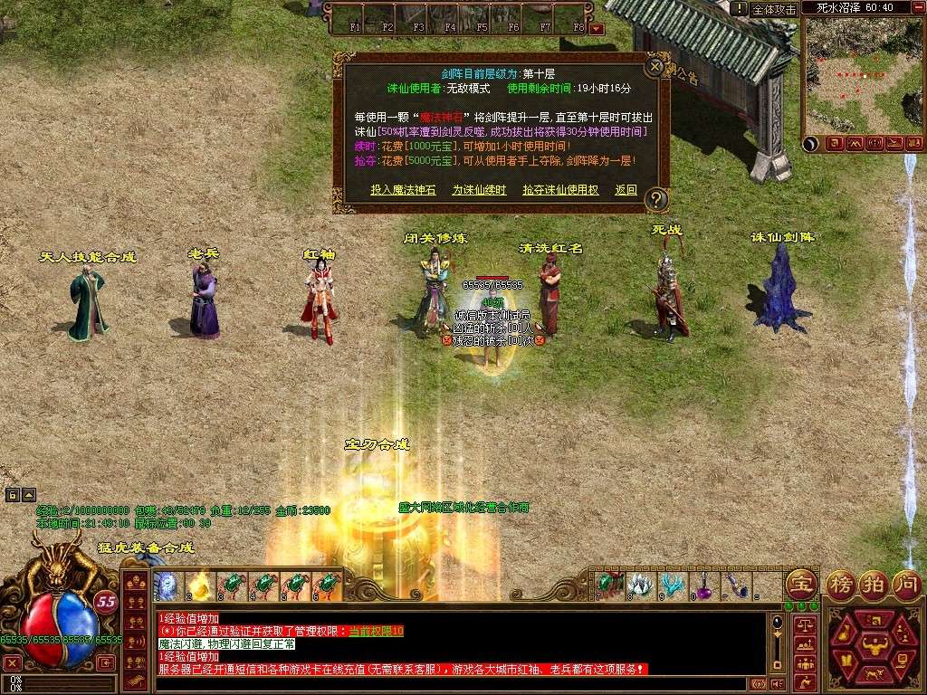 新手介绍:新手初始等级40级,上线即可领取元神,然后点老兵的练级传送进入新手练级区,可以让你迅速升级,你也可以