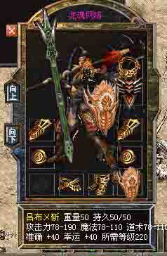 游龙战神武器 幸运+10 准确+10 速度+1 攻30-100 魔30-50 道30-50
