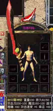 张飞ㄎ斩 幸运+25 准确+25 攻击48-160 魔法48-80 道术48-80