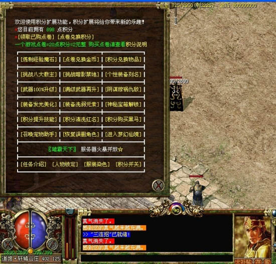 1.45 版本,带天外天,西沙,冰宫,地狱幽灵船,八大,暗影,武器MAX再升,升级宝宝。武器到擎天级。带影魅之刃,诺玛套装,字体项链。首饰到杀魔刀,九梦系列。还用很多大家自己去体验。