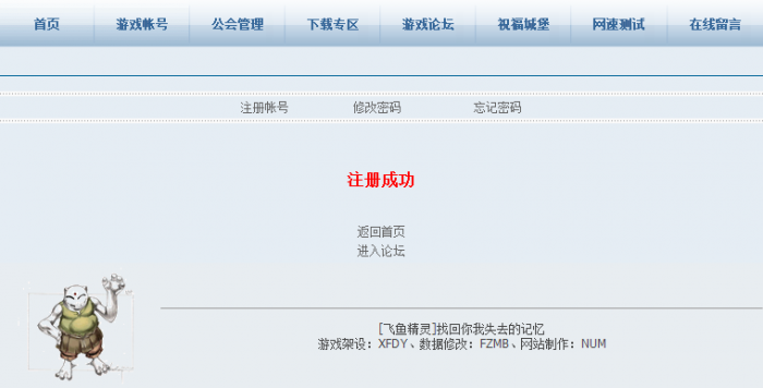 帐号注册方式,打开网页访问http://127.0.0.1/即可进入游戏主页,进入游戏帐号页面注册帐号。