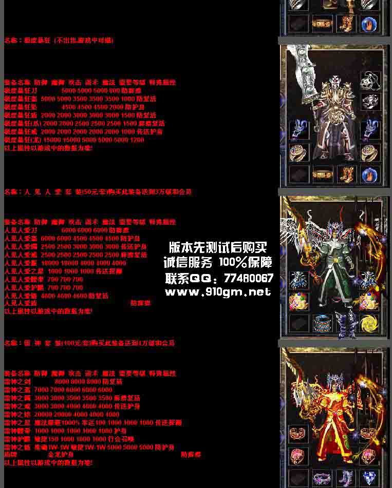 本服务器采用超级变态 8.8PK版本,经过修改筛选融合成现在的9.9PK版,本版本适合喜欢PK的玩家和BT家族进入,有心脏病的,受不刺激禁入。。。