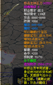 【游戏特色】 所有玩家上线VIP4, 魔石自动入包,超级好打,特球,副宠相当好打!充值后自动充VIP5,VIP6,VIP7 VIP5以上会员商店购买享受1MS购买TQ包的优惠。每天工资100万,300万,500万