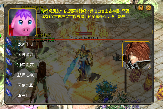 终极BOSS:高级装备礼包,中级装备礼包,初级装备礼包,神谕之石,神圣药水,25星一键购买包,19星一键购买包等