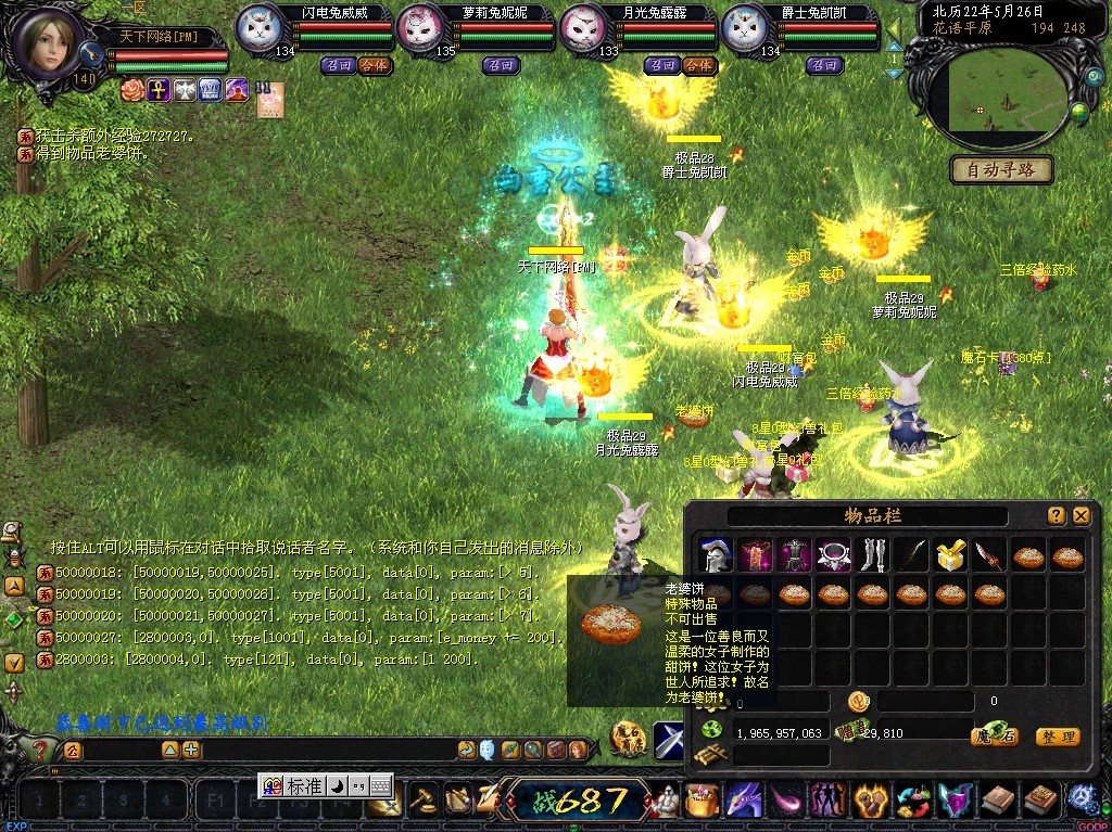 当上交的老婆饼达到一定数量,会刷一只终极BOSS(远古大魔王)在雷鸣杂货店旁边(296.408)处,暴本服所有贵重物品,暴率可观!