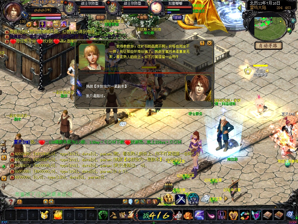 1:本服最新添加了官方副本:冰封虫穴,不朽之墓. 里面刷了 超级BOSS 难度极大,建议组队,找BOSS挑战去吧.