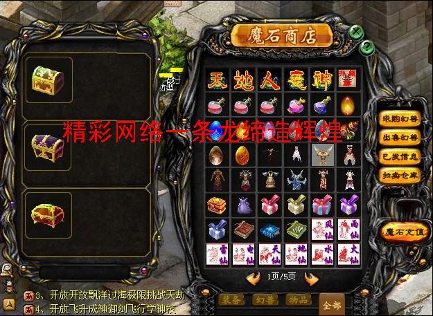 5:挑战天地人魔神五界能获得年兽封魔箱,飘洋过海证明,杀死五界里面的怪物获得他们的人头,收集天地人魔神5个人头可以参加一统五界,一统五界分天地人魔神五为皇帝,杀死皇帝获得5个皇帝灵魂,就能一统五界