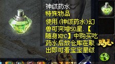 10、宠物飞升地图暴+30装备,此地图只有赌博随机进入宠物飞升地图暴+255装备等等,是否心动了,只要你运气够好,什么都有可能。