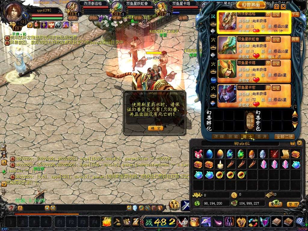 【注意】宝宝使用加星药水前,请把其他多余宝宝存放在仓库,要加的放在宝宝拦里,并且宝宝为出征状态
