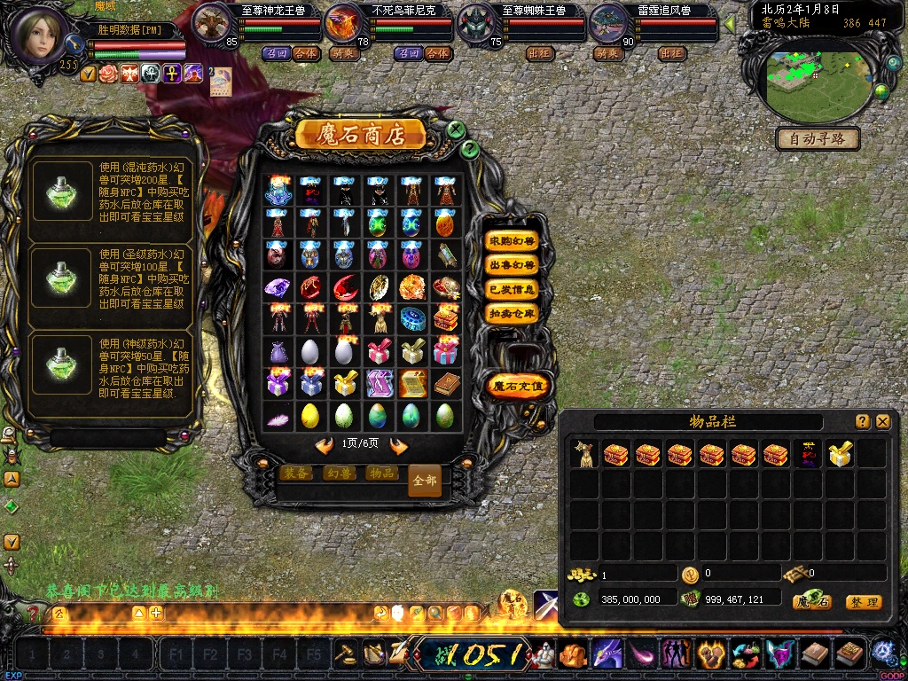 宝宝:至尊神龙王出生(400*)至尊蜘蛛王出生(400*)凤凰坐骑出生(50*)普通坐骑出生(27*)普通宝宝出生(36*)