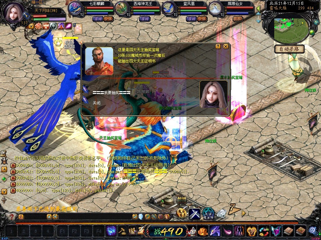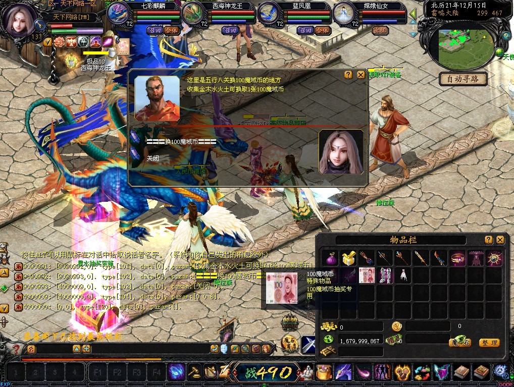 6:加入金木水火土五行换100魔域币,收集10张魔域币可抽奖,抽奖可以选择魔石,星水,四大天王卡