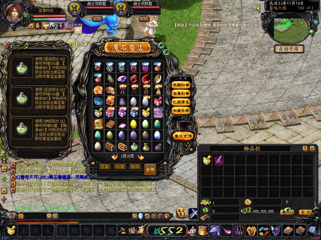 4、三职互转.可随意领取三职业终极装备.方便转职后换 .神力球升BB到255