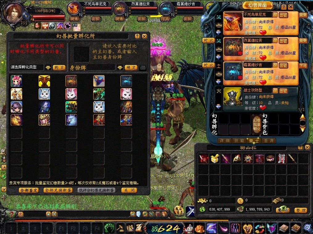 2、最高4宠 装备最高+255 战魂+9 等级最高255级 完美中变版本玩到你手软!!