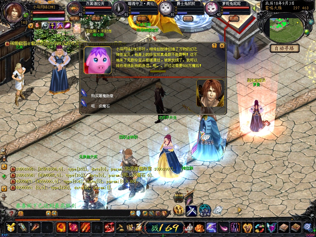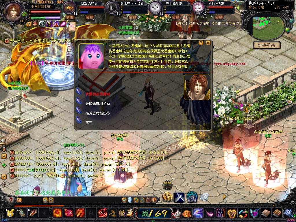 ,会自动寻路到任务开始的地方,然后做2分钟左右的任务,将任务做完会自动寻路回来到恶魔城传送猪[注意: