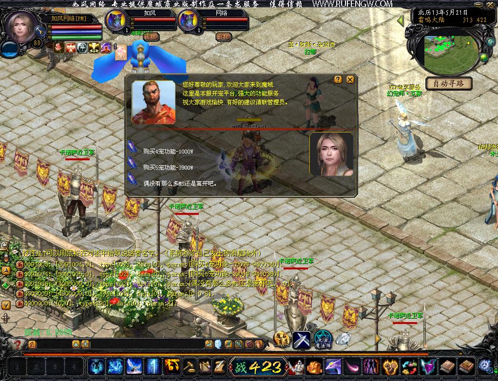 领工资,远程幻化宠物,BOSS传送,城市传送,洗去红名,出售最新7种加255神器等... ... 所有的功能分