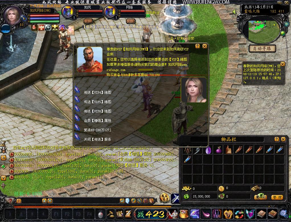 2.新人上线送VIP3、+12双洞套装、全套技能书,豪华新手礼包及游戏NPC指南,免费版设置为上线80级。