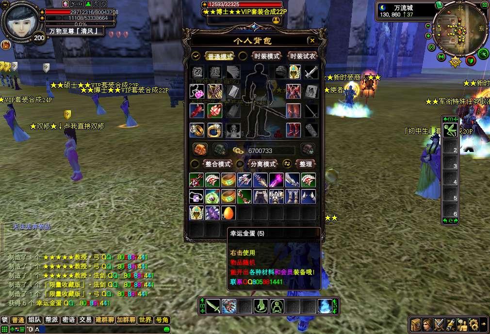 更新说明:1.更新军衔系统13级军衔 450W声望!「14级军衔」500W声望.「15级军衔」 600W声望.「16级军衔」 700W声望.「17级军衔」 900W声望.「18级军衔」 1200w声望2.更新限量版书页合成<让所有玩家都可以拿上限量版的武器,不需要再和会员挣抢野外BOSS了>:请到24品合成那合成:具体材料请大家进游戏查询!!3.修复通用战宠合成的BUG,改成材料合成,请到特殊道具合成那合成:具体材料请大家进游戏查询!!8月10日上午10点已更新:24品武器打孔功能,您不会再嫌弃自己的武器攻击低了,如果是一洞,那您还等什么呢,赶紧去司令合成那打洞吧,几率为50% <人品+运气=孔的数量> 最高2孔~~更新后24品武器均不可以交易,装备首饰可以交易~~友情提示:游戏中的终极法魂石和会员的终极法魂石的属性是一样的,游戏中显示不正确!请大家互相转告~【版本介绍】: 请大家爱护游戏环境,大家公平竞争,拒绝秒挂.点击查看秒挂标准※双倍爆率地图,300级玩家可以进入或者每天晚上8-9点可以进入。※新手每天报到奖励,只要您每天上线了就可以领取奖励.只要连续上线八天,将可以合成全服最好属性的披风:「限量珍藏版」披风。※添加限量版披风,武器,戒指,攻击和属性都是最上乘的。【武器有攻击等级属性】※在线泡点功能,2小时奖励5个幸运金蛋<可以开出所有材料+会员装备>※挖宝活动,飞来镇每30分钟刷新一次,每次4个宝箱,【能挖出会员装备哦】※本服22-24品可以机枪枪。22-24品可以大瞬<22品以下均不可以瞬发> 【注意:法师必须是套装】※八折VIP卡,持有此卡购买会员8折优惠。各大BOSS都有几率爆出!!※新增「变种」大力神 和 「变种」飞天猪 所有玩家出门必带宠物哦!※超炫武器外观,全新多种玩法,多样武器外观变化,集美观新颖,交友温馨,打架激情于一体。※所有装备精练后都会大大增加属性基本在2-3倍左右哦!!※添加官方最新时装,飞机,坐骑。让您眼花缭乱!!※所有特色稀有观宠/飞宠/坐骑/时装商店低价购买,包裹跟宠物笼全部扩充好,地图全开!※本服取消乾坤袋,购买物品请到万流 商人NPC购买※结婚系统保存几率为50% 请玩家结婚后尽量半小时内不要下线※本服承诺,绝对公平稳定长久,家族进服一律不给任何待遇,所有物品在游戏中均可获得,普通玩家只要多花点时间与耐心,与会员一样厉害。【上线设置】:本服上线万流安全区 上线150级, 修真大乘【双修一秒】 17品套装一套 仙魔技能书各一套<仙技能书在仓库>。声望450W→【可以去军衔领取使者那领取13军任务 然后去远征营地杀掉5个美人鱼最后获得13军套】. 注意:上线赠送的4个二级攻击石头,是给您准备打在19品武器上面的,切记请别卖到商店了,不然后面说打着BOSS累,请别怪客服!!希望大家相互转告!! 包袱赠送一个新手指导,如果您不知道材料的出处和BOSS的坐标,您可以一览新手指导,方便所有玩家不用看网站就知道在哪刷材料了。【装备顺序】:装备依次顺序为:新手送的【班长】——19品【排长】 —20品【连长】— 加强20品【营长.团长】 — 21品【旅长】 —22品【师长】 — 23品【军长】 — 24品【司令】。军衔依次顺序为:新手送的【13军★40W声望】——20品【14军★500W】 —21品【15军★600W】— 22品【16军★700W】 — 23品【17军★1000W】 —24品【18军★1400w】以上的装备请所有玩家游戏体验。注意:【装备品数相等的装备属性也相等】【副本介绍和材料出处】:材料图片教您该去哪49副本爆出: 爆出: 【排长】成品套装59副本或渔村 爆出 【★军人之魂★】 【★军人之魄★】 【★军人之灵★】 合成:20品【连长】59副本和飞来镇 爆出 【★★军官证★★★】 此材料为通用材料.可以合成任意材料 合成 :【营长.团长】89魔副本 爆出 〓完〓 〓美〓 〓世〓 〓界〓 合成:21品【旅长】89魔副本 爆出 〓完〓 〓美〓 〓世〓 〓界〓 合成 :22品【师长】89仙副本 爆出 〓金〓星珠 〓木〓星珠 〓水〓星珠 〓火〓星珠 〓土〓星珠 合成:23品【军长】89仙副本 爆出 〓金〓星珠 〓木〓星珠 〓水〓星珠 〓火〓星珠 〓土〓星珠 合成:24品【司令】神月副本和飞来 爆出 〓等级卡〓夜郎和夜哭小怪 爆出 〓声望牌〓 分为:200-10000不等的声望牌 【为了玩家考虑声望牌多了点的累,积累100个声望牌可以去WL声望牌换取员直接换取声望】【野外BOSS介绍】:〓凤姐〓会员武器 坐标 夜郎 123.319 103.321 【每3小时刷新一次 每次2个 每个必爆一样】〓凤姐〓会员首饰 坐标:通天糊 414.588 431.588 【每3小时刷新一次 每次2个 每个必爆一样】〓凤姐〓会员披风头盔 坐标:太极滩 583.984 575.993 【每3小时刷新一次 每次2个 每个必爆一样】「轮回·天尊」神器 坐标:万流城北郊 101.865 99.875 【每4小时刷新一次 每次2个 每个必爆一样】「轮回·魔尊」限量 坐标:夜郎 116.324 【每2小时刷新一次 每次1个 每个必爆2样.注意此BOSS爆的是材料.合成终极武器和戒指的必备材料】 友情提示:游戏中除了军衔装备24品武器和限量武器外其它套装均可交易!【任务系统】:每天报到奖励:只要每天上线报到后系统就会赠送您:二张无敌符和 俦具:「限量披风」加强版 两个 【集齐15个将可以合成限量版披风,全服属性最好的】金蛋声望任务:完成任务后系统会赠送您2000声望和幸运金蛋一个【幸运金蛋能开出所有材料和会员装备】在线泡点奖励:每2小时系统会赠送您5个幸运金蛋 【幸运金蛋能开出