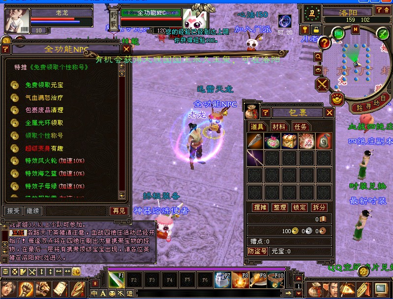 各类野外boss,燕子,四绝,宝藏洞等均能获取高额元宝票,高级材料等。