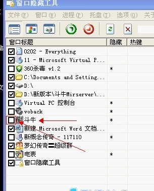第三步:打开刚刚下载的窗口隐藏工具,我们会发现斗牛的注册程序进程任然存在