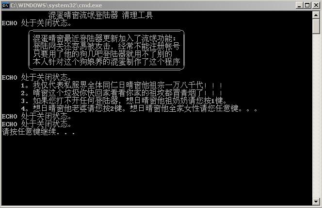 直接点击 流氓登陆器清除工具.bat 按任意建开始清除