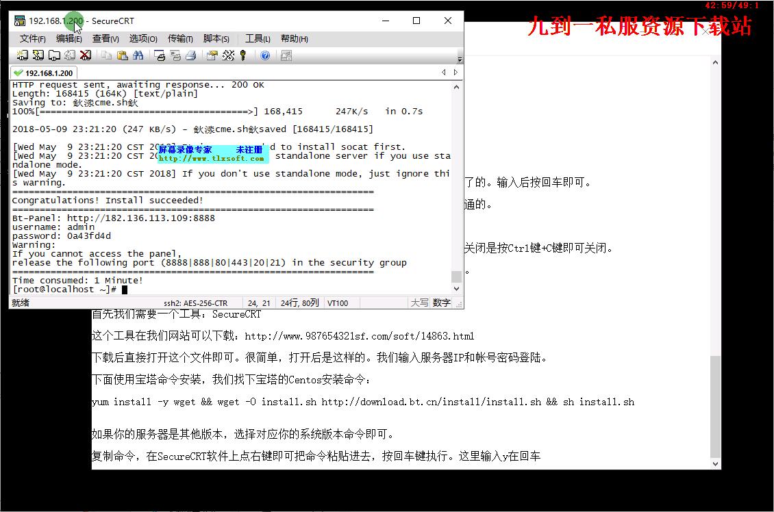复制命令,在SecureCRT软件上点右键即可把命令粘贴进去,按回车键执行。这里输入y在回车