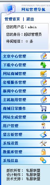 本程序后台功能完整,明文无限制,更无漏洞,前台内容全部在后台管理.