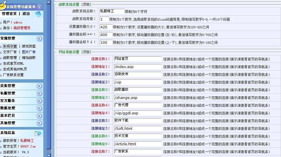 2010年7月10日 发布 私服特工发布站系统V4.3版