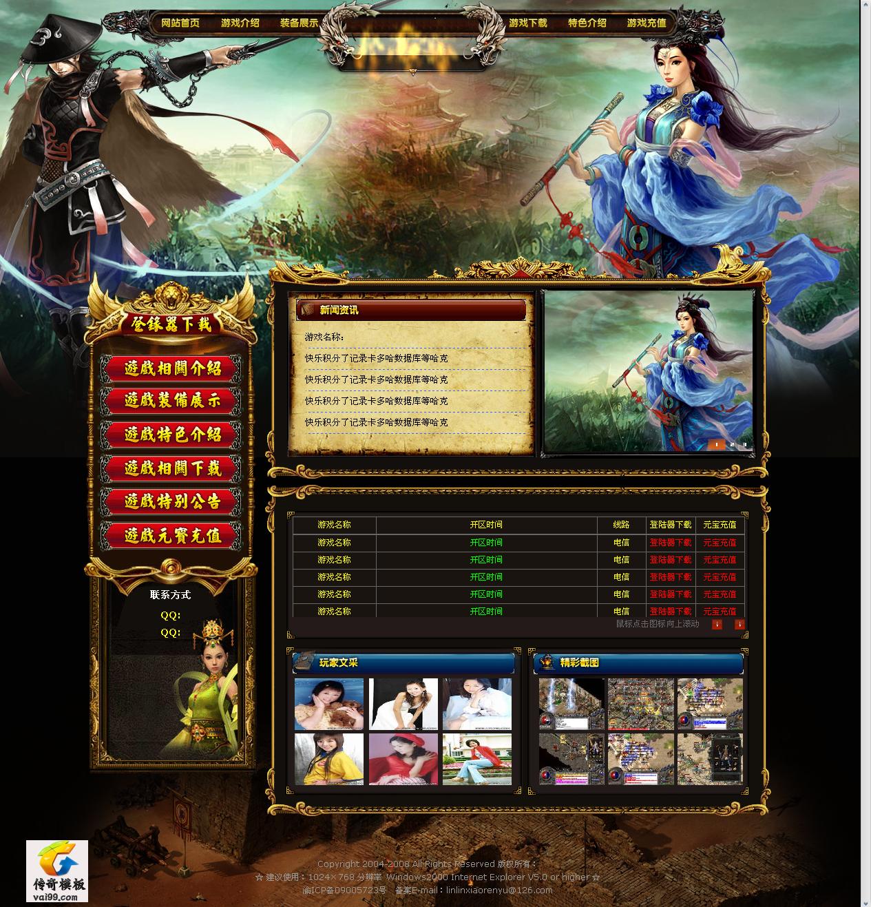 简介: 专业的美工,漂亮的格局, 游戏人物为背景,更突出游戏网站的魅力!