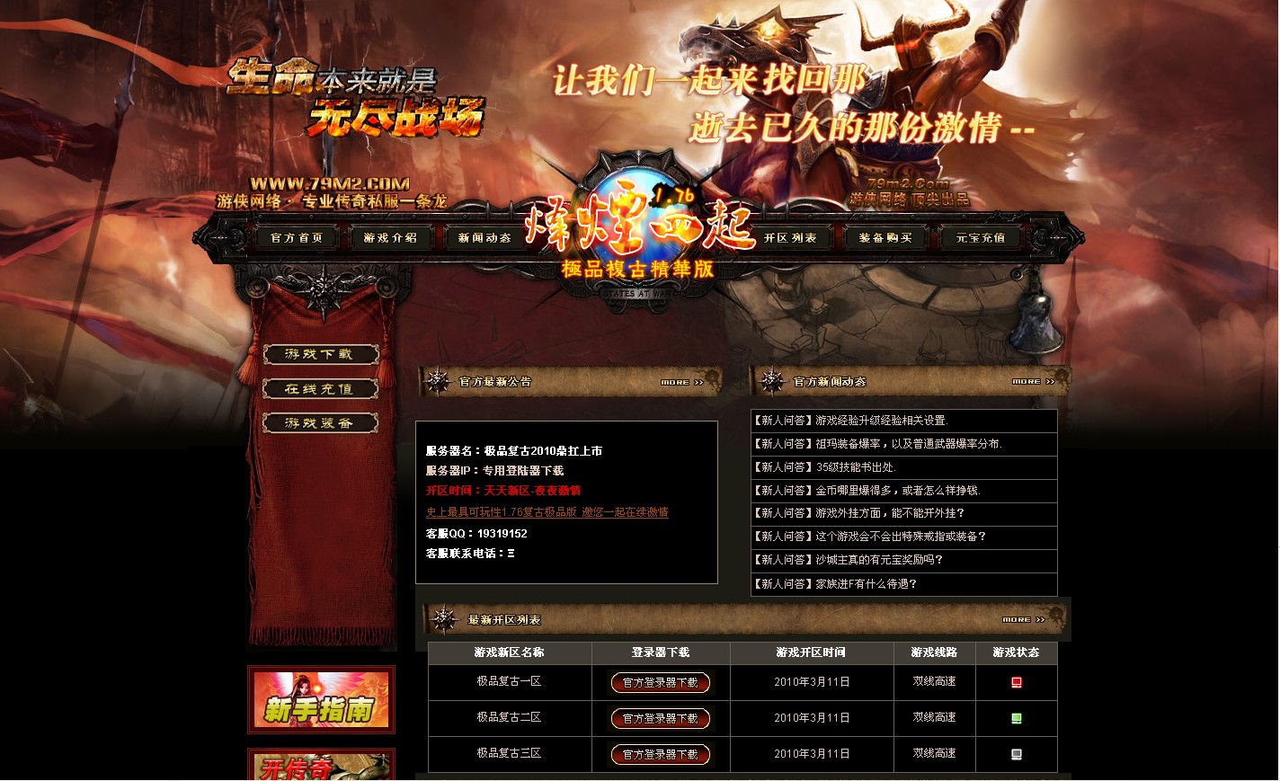 ◆ 适用于1.76传奇私服开区网站使用...全站为html格式,方便GM朋友修改