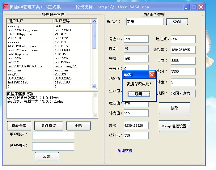 4,本程序仅供GM测试使用,开区慎用,因数据修改而出错与作者无关。
