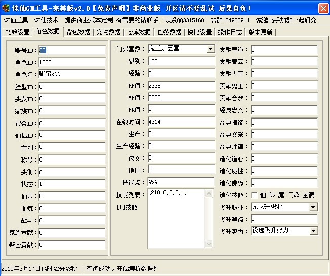 - 超级诛仙人物数据修改器v5.0商业版 4497