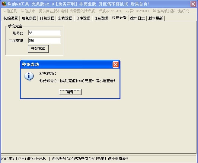 超强诛仙人物数据修改器v2.0 【秒充元宝】【变态宠物】