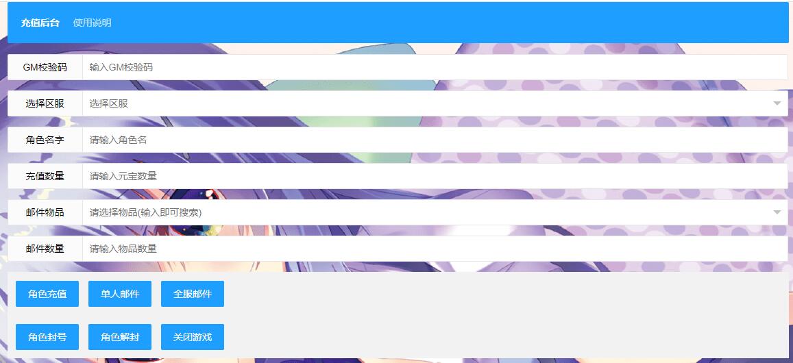 http://IP/gm/ 这个是添加授权后,可以玩家自己充值登录地址。