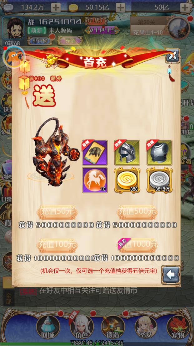 5档:单日充值150000元(实际金额1500元):神·进阶丹*2000,史装碎片*400,魔药大礼包*20