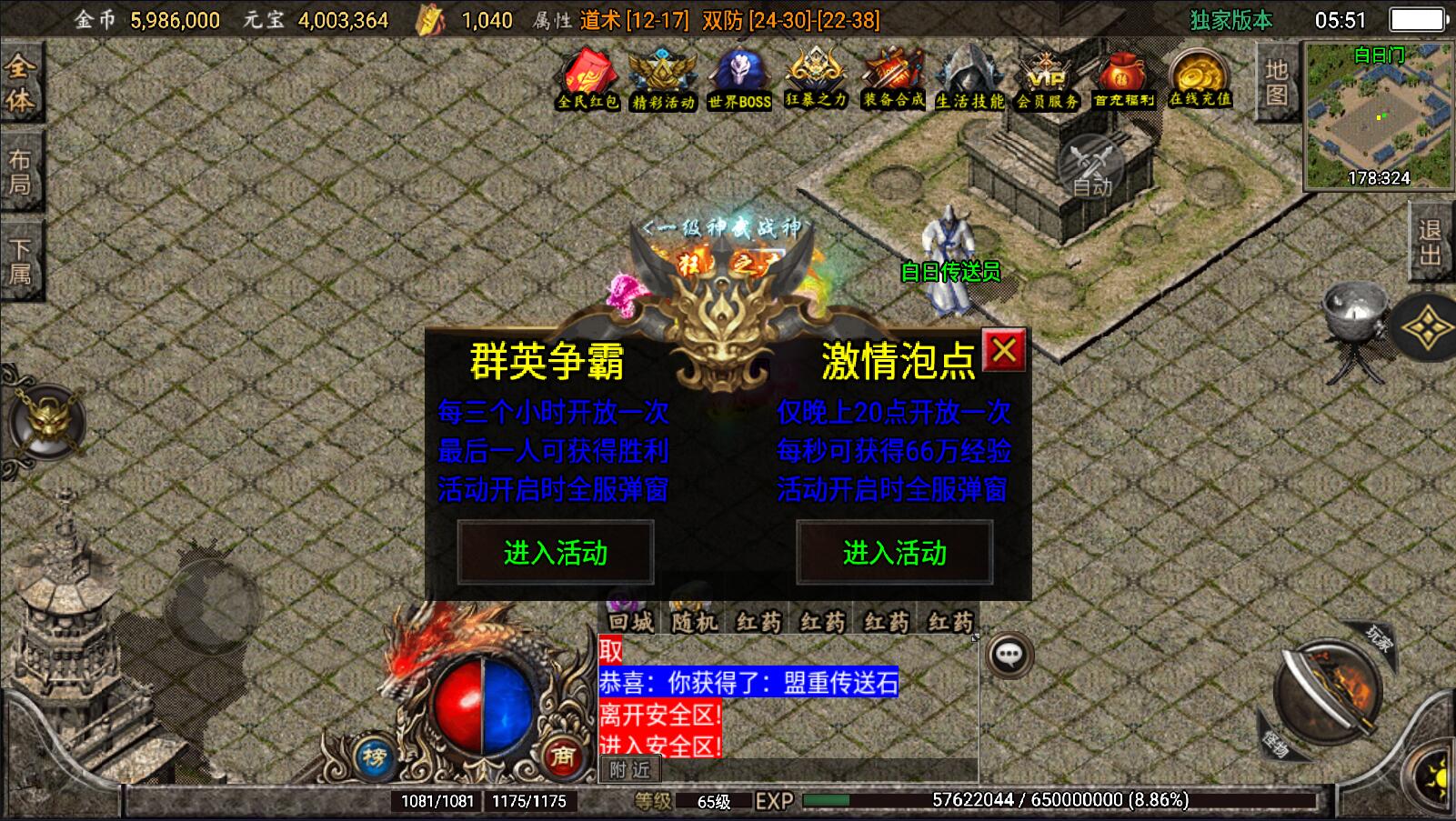 - XO三端引擎传奇手游【1.80昊天合击打金版 5751