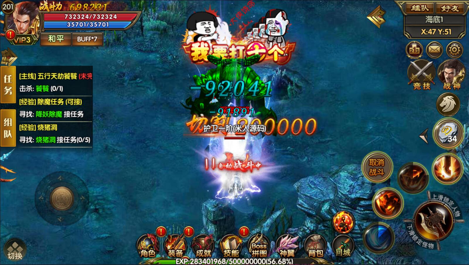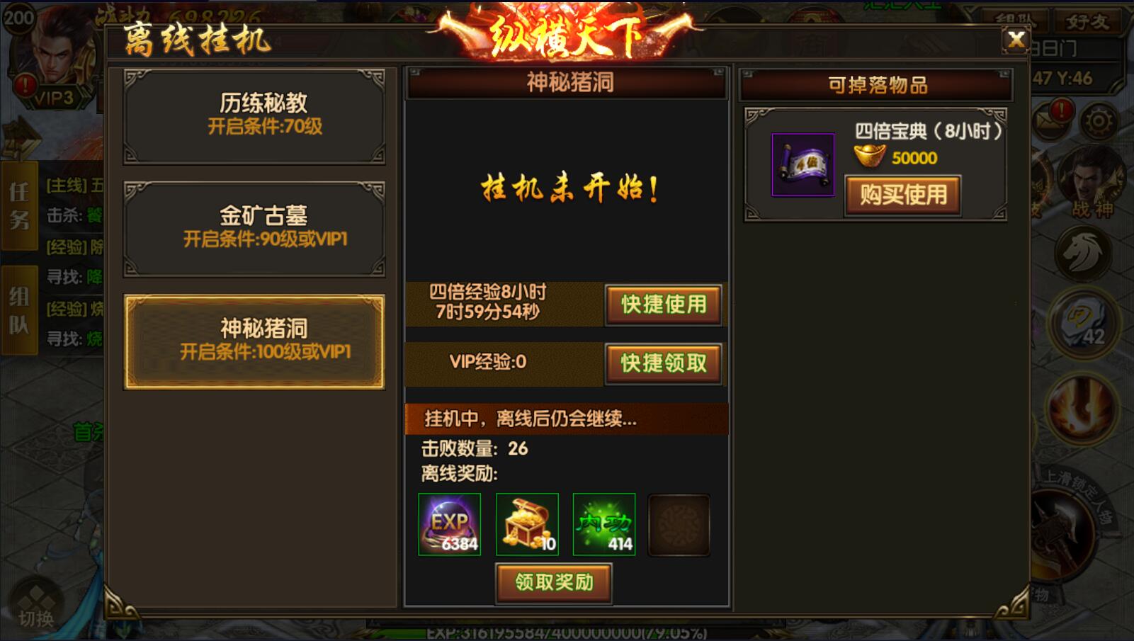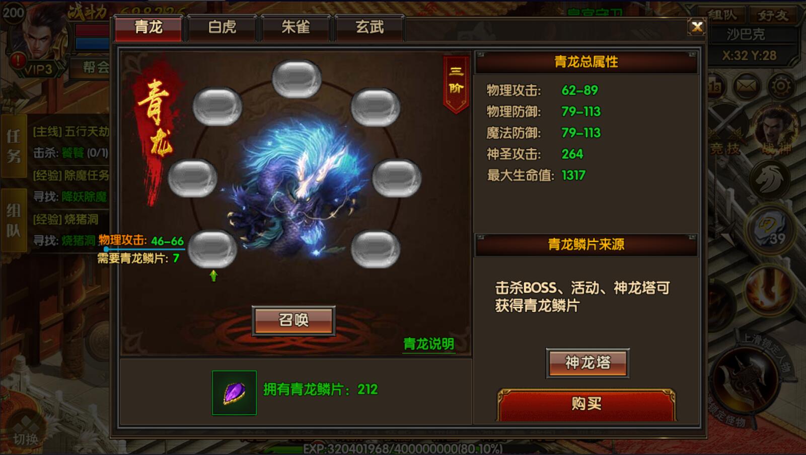 (龙魂系统):升级龙魂可获得属性加成,龙魂材料可充值VIP获取、神龙塔、各大BOSS身上都有爆哦!