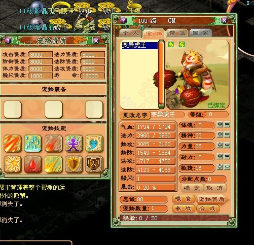 技能每只有3个(6只技能全部一样,自己需要撒技能自己看运气吃精元丹)