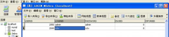 在创建好后,双击连接数据库Zebra,再双击LOGIN。如图