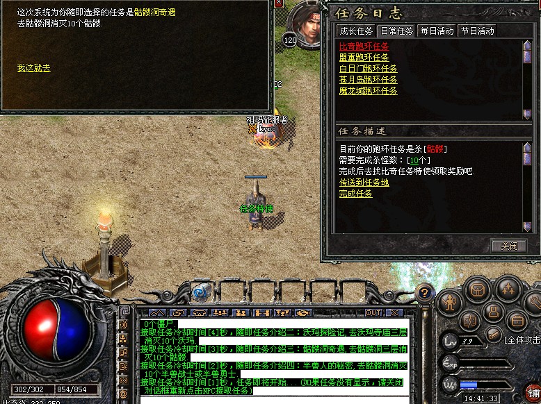 选择完阵营后,要进行新手任务,完成新手任务即可离开新手试练的地图,到比奇可接取比奇跑环任务,比奇跑环任务一共有四个,每次接取任务都会进行随机选择,