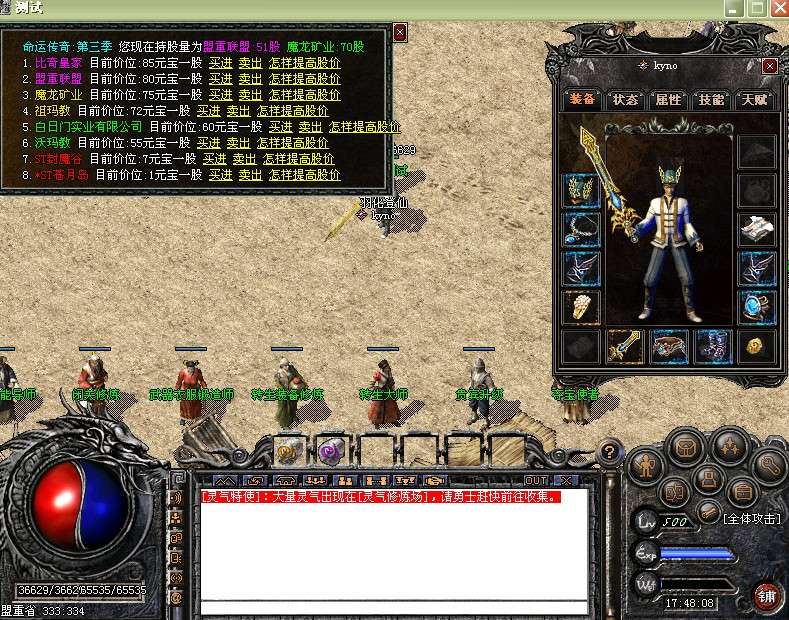 股票系统和赌博脚本的玩法类似,在游戏消灭指定BOSS可提高股价,股价每天也会随机增加或减少,也可交纳指定物品提高股价,当然了这些物品也可以用于金钱购买方便坐庄,股价每星期重新归0一次