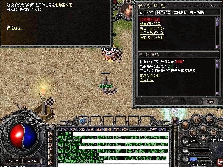 选择完阵营后,要进行新手任务,完成新手任务即可离开新手试练的地图,到比奇可接取比奇跑环任务,比奇跑环任务一共有四个,每次接取任务都会进行随机选择,