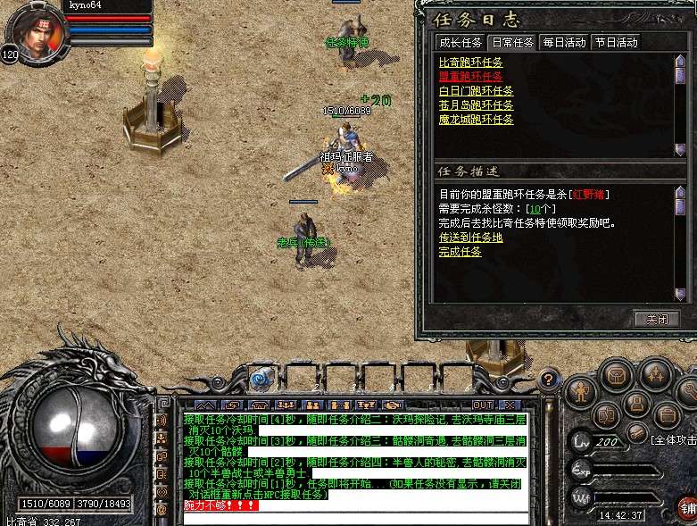 升到40级之后会赠送装备礼包,然后去做盟重跑环任务,盟重跑环任务共有10个任务,同样每次接取任务都会进行随机选择。