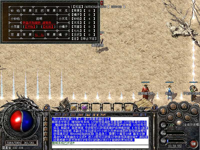 登陆本服务器需要专用登陆器,否则不能登陆,本服务器禁止任何外挂,发现使用脱机等外挂者,不管是否花钱,立即永久封号,按F12呼出自带内挂,封穿人穿怪!