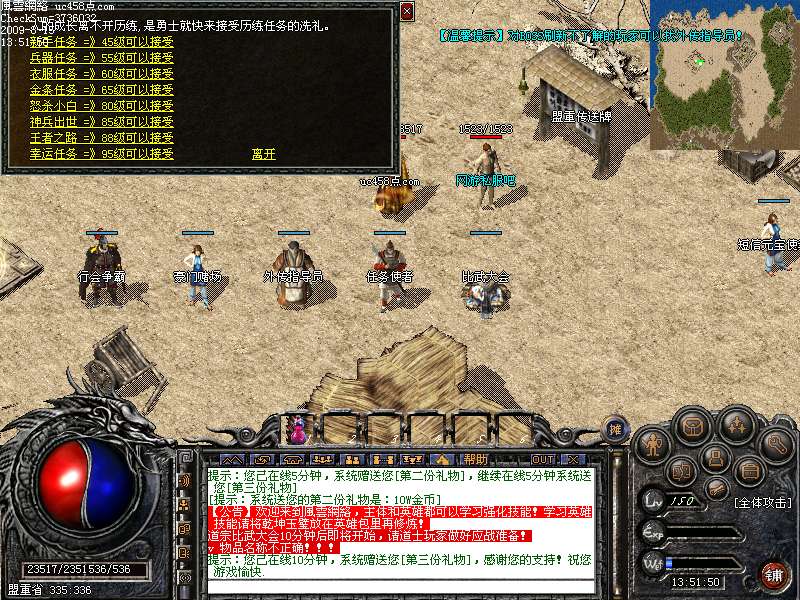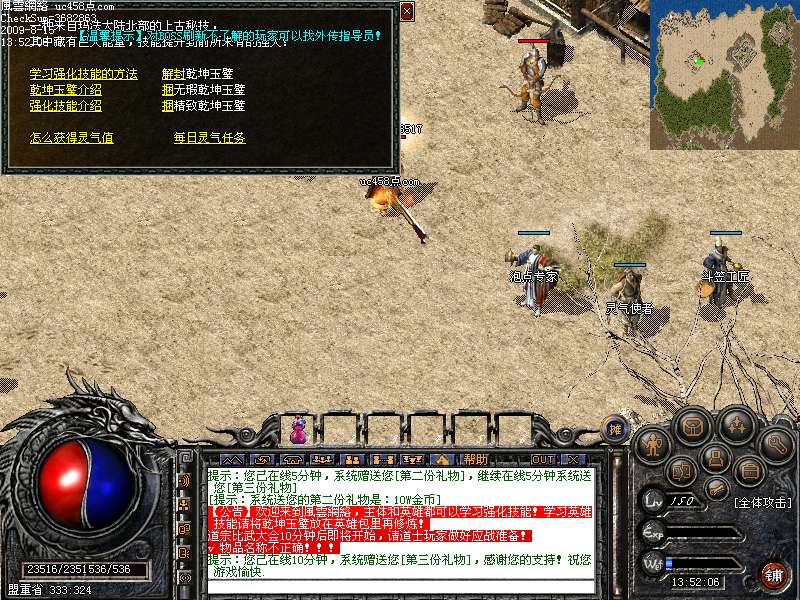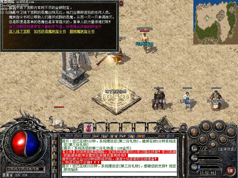 【新手设置】 新手上线送红包.初级装备在僵尸洞和蜈蚣爆出,赚钱可以在尸王殿打出火龙物品卖给商人!