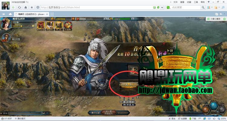 特色说明:修改等级100级 无限元宝 领首冲等。。。