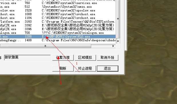 7..再启动WXOnline.exe,到进入游戏后(看截图,是到登录角色进入游戏后),再用W2kXpCJK来动态挂接