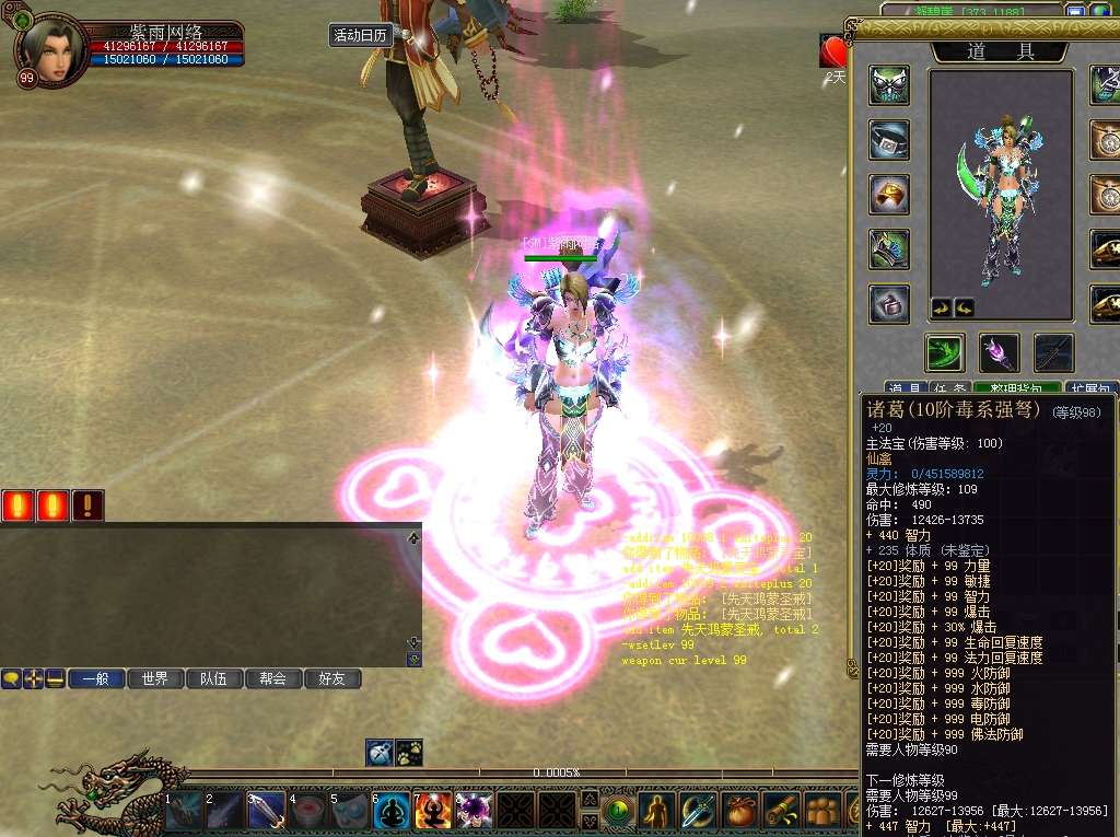 ·增加法宝秒修功能,装备上法宝后输入命令: -wsetlev 等级